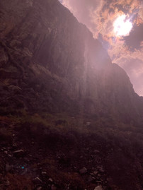 Depuis mon siège, j'observe les montagnes qui pointent vers le ciel et je prends un malin plaisir à les dévisager de haut en bas. Je me sens minuscule. J'ai déjà connu la hauteur des montagnes en France, mais ici c'est une énergie complètement différente qui se dégage, quelque chose d'indescriptible. Serait-ce l'histoire et la culture millénaire des peuples qui habitent ces montagnes qui leur confère cette force mystique ? Serait-ce leur hauteur démesurée ? Peut être les deux à la fois ? Une chose est sûre, elles sont majestueuses. Aucune photo ne pourra transmettre le spectaculaire de ce qui se dresse sous mes yeux ébahis. Je scrute chaque détail du paysage qui s'offre à moi derrière la vitre qui est comme un écran de cinéma, sinon mieux. Je crois que je n'ai jamais rien vu d'aussi beau de ma vie.